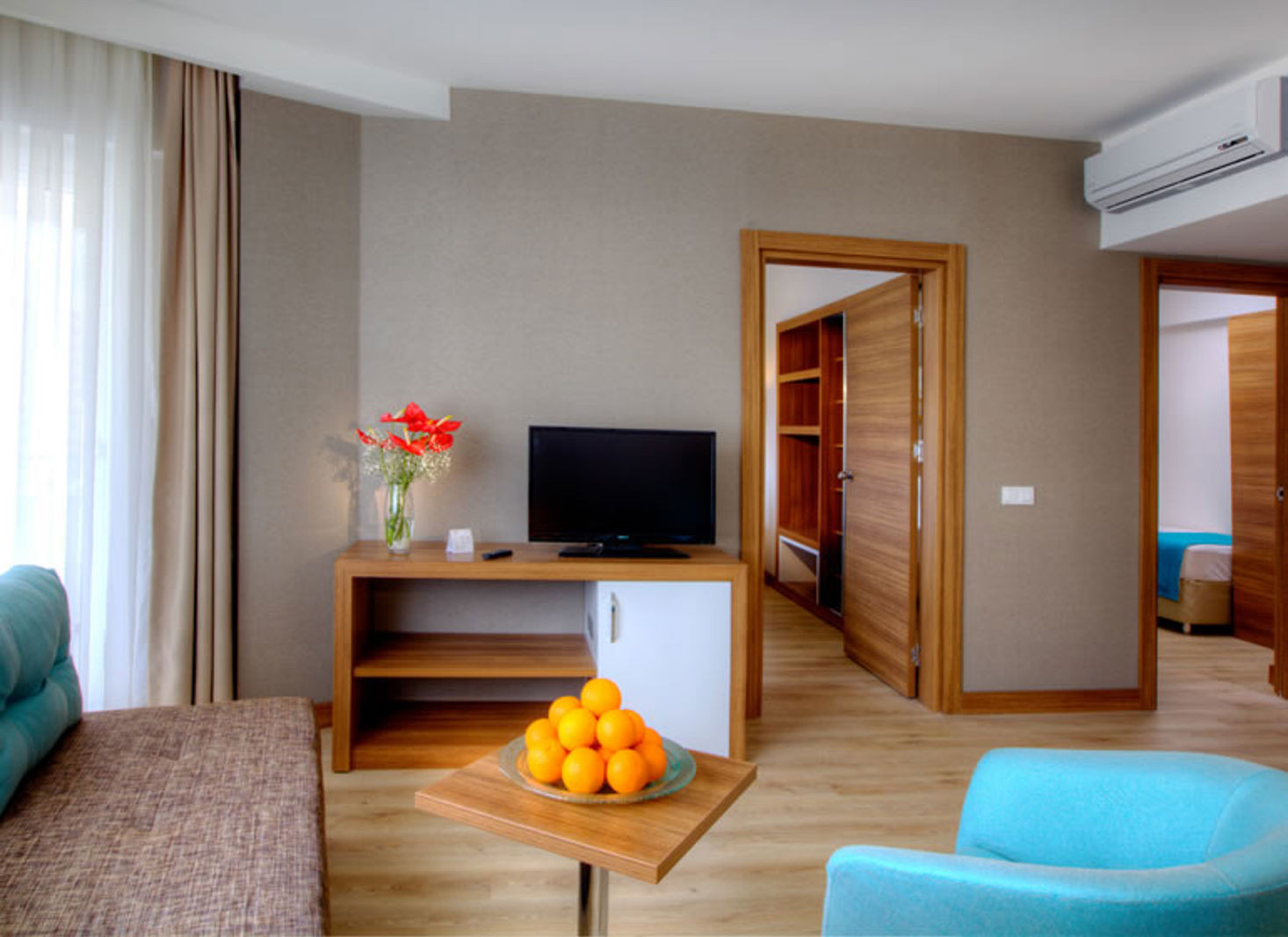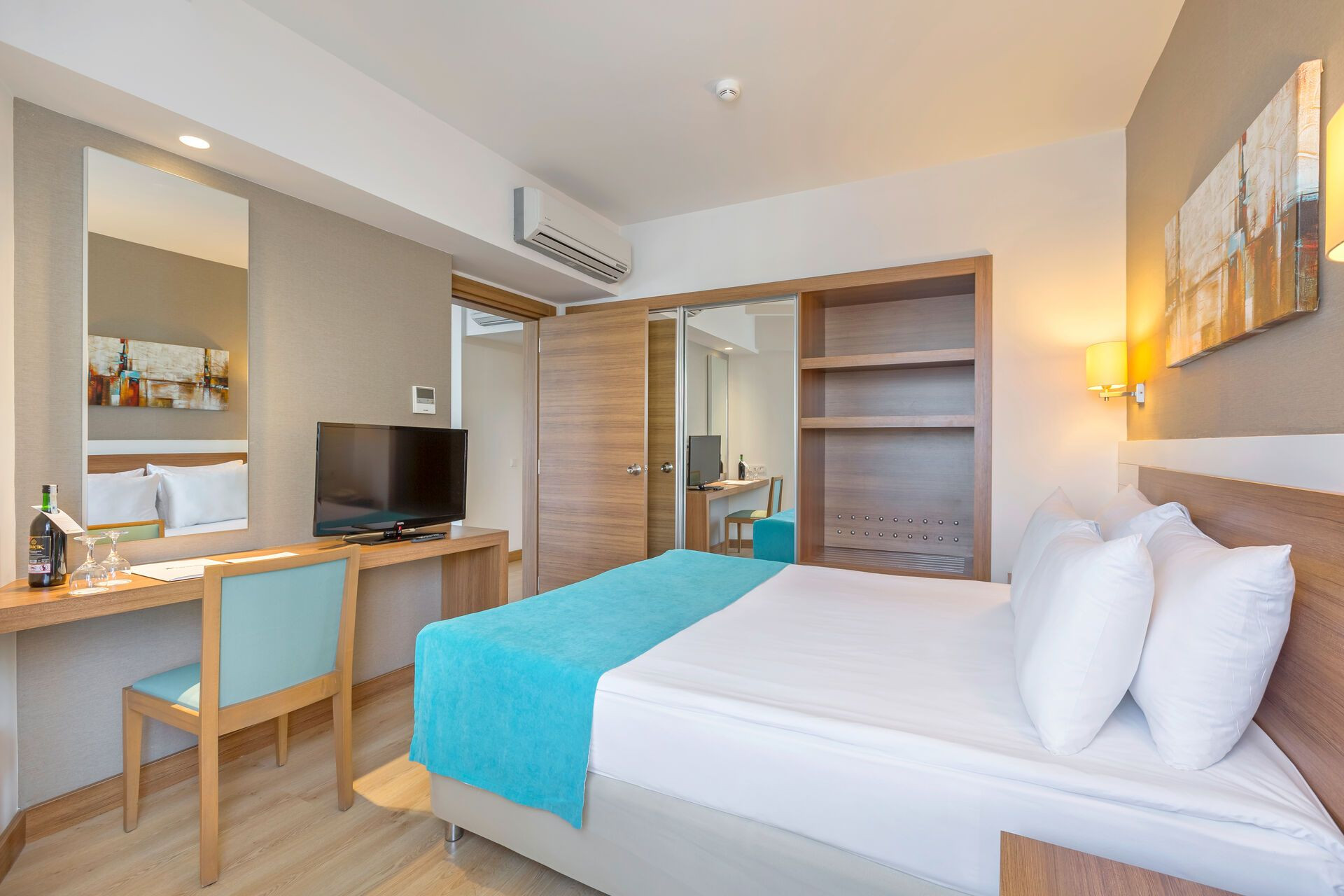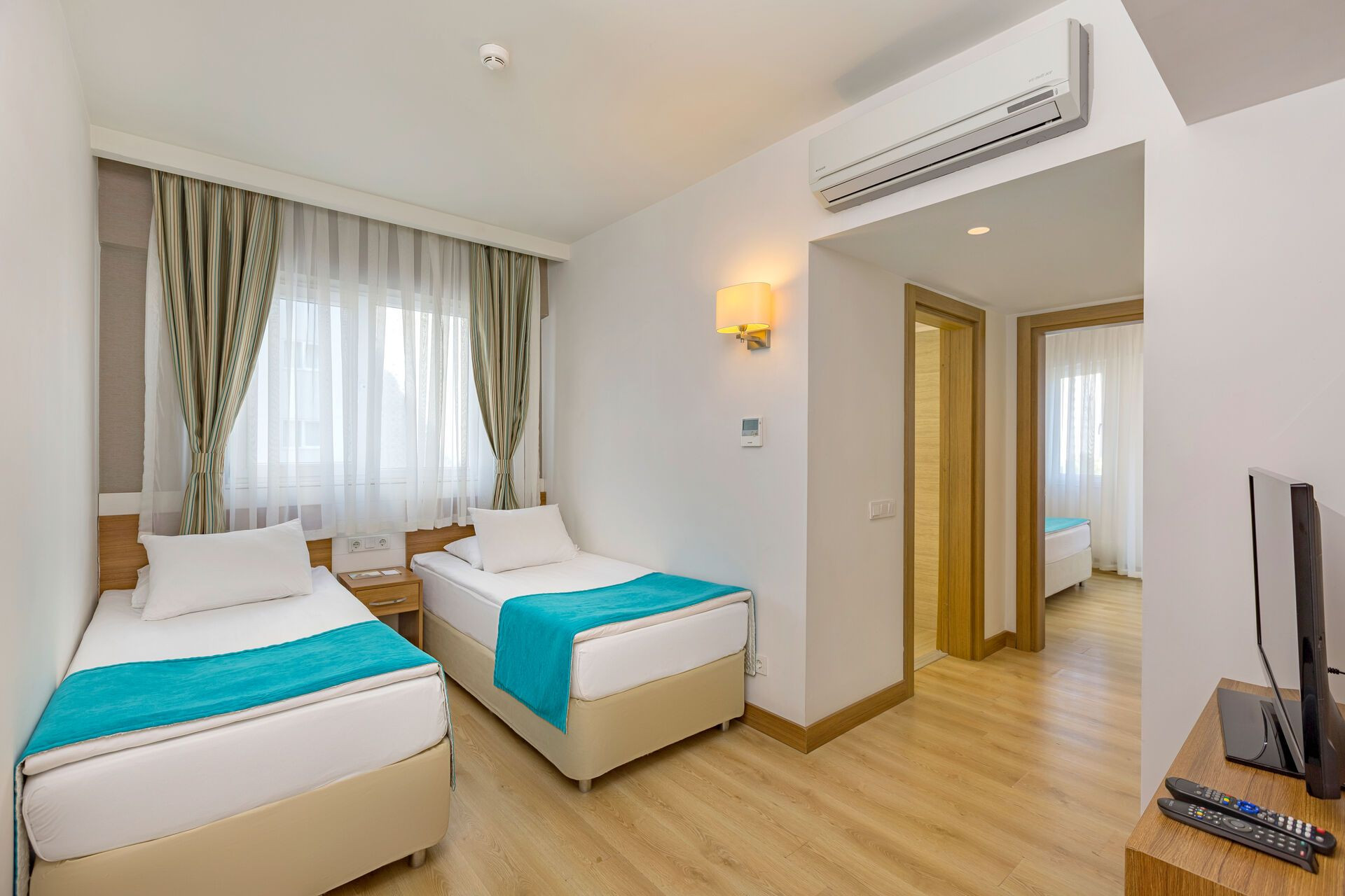 In de kamers bevinden zich een keuken en een badkamer, voor een aangenaam luchtklimaat zorgt airconditioning. Voor de jongste gasten staan kinderbedjes klaar. Daarnaast is er een minibar en tegen betaling een kluis voorhanden. Een telefoon met directe buitenlijn, satelliettelevisie en Wi-Fi (kosteloos) ronden het serviceaanbod af. In de badkamer, uitgerust met een douche, vinden de gasten een föhn. Voor extra comfort in de badkamers zorgen cosmetische producten. Er zijn ook rolstoelvriendelijke kamers met barrièrevrije badkamer beschikbaar. Het hotel beschikt over gezinskamers en niet-rokerskamers.